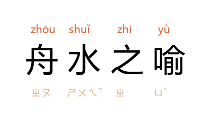 舟水之喻:舟:船。对船和水的比喻,即水可以载舟,也可覆舟。老百姓可以帮助君王建立朝廷,也可以起来反抗推翻朝廷。