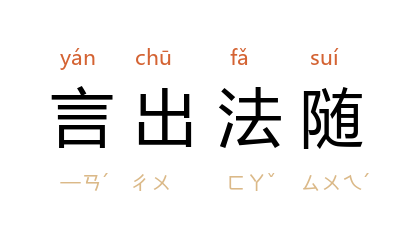 出处清 林则徐《奉旨前往广东查办海口事件传牌稿》:“言出法随,各宜懔遵毋违。”