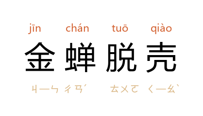 金蝉:金黄色的知了;壳:坚硬的外皮。蝉变为成虫时脱去原来的外壳。比喻用计脱身;使对方不能及时发觉。