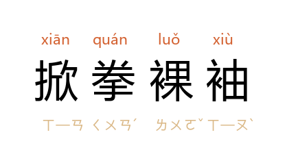 出处明·凌濛初《二刻拍案惊奇》卷二十七:“行酒之间,说着许多豪杰勾当,掀拳裸袖,只恨相见之晚。”