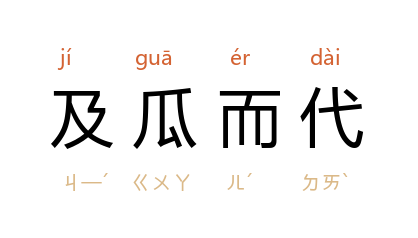出处《左传·庄公八年》:“齐侯使连称,管至父戍葵丘。瓜时而往,曰:‘及瓜而代。’”