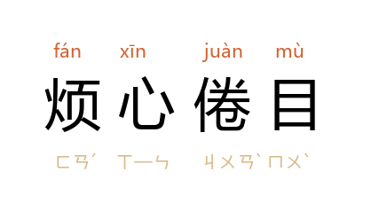 烦:烦躁,烦恼;倦:厌倦。烦闷的心情,倦怠的眼睛。