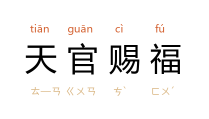 天官:道教奉天、地、水为三神,天官为其一。祈求降福消灾的吉利话