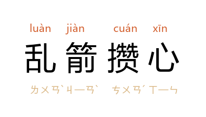攒:积聚。乱箭身在心上。比喻内心极度痛苦。