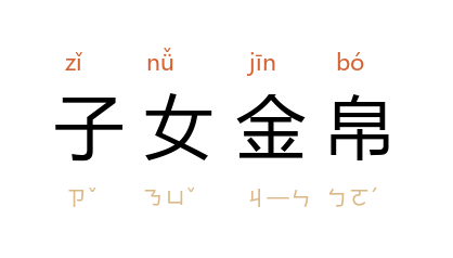 注音ㄗˇ ㄋㄩˇ ㄐ一ㄣ ㄅㄛˊ