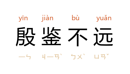 殷:指商朝后期;鉴:镜子。指殷商子孙应以夏的灭亡为借戒。后泛指前人的教训就在眼前。