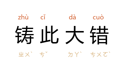 出处茅盾《一张不正确的照片》:“而笔者之所以铸此大错,实因他不懂得一九三二年文坛现象之历史性。”