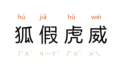 假:假借;凭借。狐狸借着老虎的威风去吓唬其他野兽。比喻凭借别人的威势来欺压人。