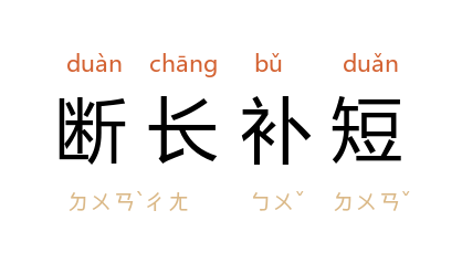 截断长的来补短的。比喻取别人的长处,来补自己的短处。