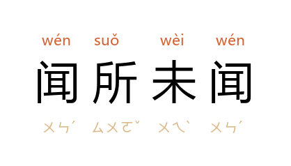 闻:听到;未:没有。听到的是以前从来没有听过的。形容传说的事物或消息新鲜、奇特。