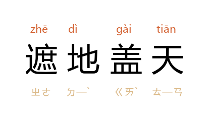 出处李季《五月端阳·打横山》:“大小据点一扫光,红军和赤卫军遮地盖天。”
