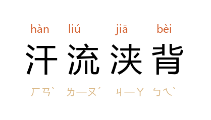 浃:湿透。汗水流得湿透背衣。形容闷热或干活卖力气。也形容极度惶恐或羞愧。