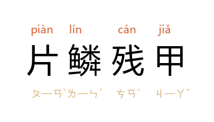 出处梁启超《新史学·中国之旧史学》:“时或借外国人之著述,窥其片鳞残甲。”