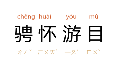 出处晋 王羲之《兰亭集序》:“仰观宇宙之大,俯察品类之盛,所以游目骋怀,足以极视听之娱,信可乐也。