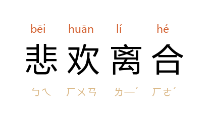 悲:悲哀;欢:欢乐;离:离散;合:团聚。指生活中的悲哀与欢乐;分离与团聚的不同遭遇。
