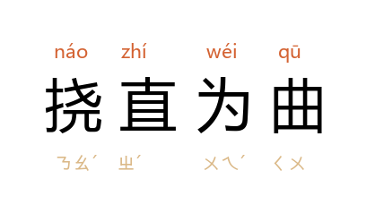 将直的拗成弯的。比喻变刚强正直为阿世取容。
