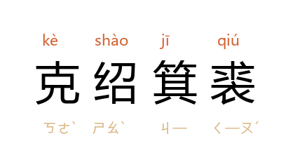 克:能够;绍:继承;箕:畚箕;裘:兽皮袄。会学着先辈人缀补兽皮制皮袄;弯着柳条制畚箕。比喻能继承先辈事业。