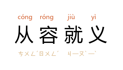 从容:不慌不忙;镇定自若;就义:为正义事业而牺牲。非常镇静;毫不畏惧地为正义事业而牺牲。