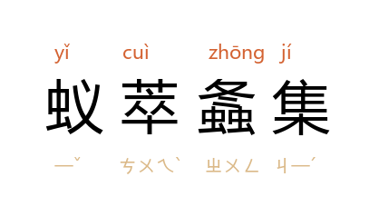 出处《宋书 袁淑传》:“羯寇遗丑,趋致畿甸,蚁萃螽集,闻以崩殪。”