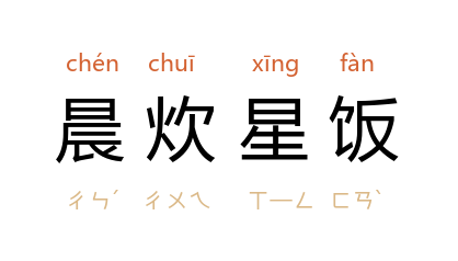 清晨烧早饭,入夜才吃晚饭。形容早出晚归,整日辛勤劳苦。