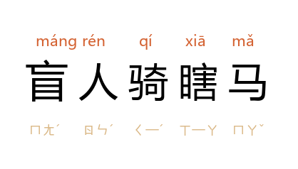 瞎子骑着瞎马。形容乱闯瞎撞,非常危险。
