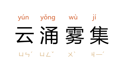 出处梁启超《少年中国说》:“举国志士,云涌雾集以应之。”