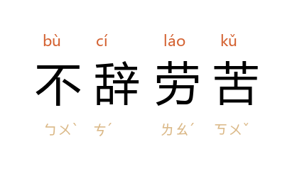 辞:推辞。虽然劳累和辛苦也不推辞。形容工作勤奋努力。也作“不辞辛苦”。