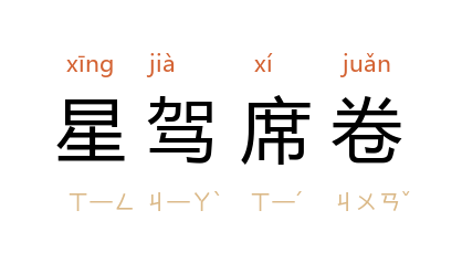星驾:连夜驾车疾行;席卷:像卷席子一样包括无余。指连夜驾车出动,迅速前行。