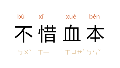 出处王朔《谁比谁傻多少》:“为了不让顾客恐惧,我们是不惜血本。”