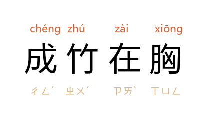 成竹:现成完整的竹子。画竹前竹的全貌已在胸中。比喻在做事之前已经拿定主义。