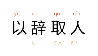 出处《孔子家语·子路初见》:“宰我有文雅之辞,而智不充其辩。孔子曰:‘ ……以辞取人,则失之宰予。’”