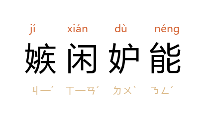 嫉、妒:因别人好而忌恨。对品德、才能比自己强的人心怀怨恨。