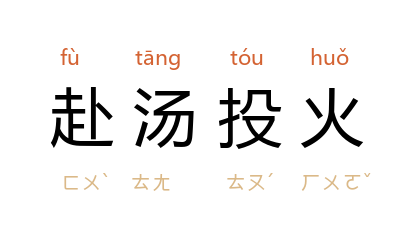 赴:去,走向;汤:开水。沸水敢蹚,烈火敢跳。比喻奋不顾身,不避艰险。