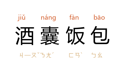 出处清·李渔《意中缘·卷帘》:“念区区酒囊饭包,又谁知生来命高,没生涯,终朝醉饱,都倚着那妖娆。”
