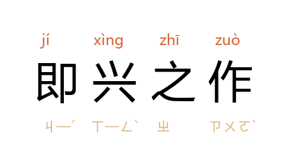 即兴:根据当时的兴致和感觉;作:作品。根据当时的感受而写成的作品。