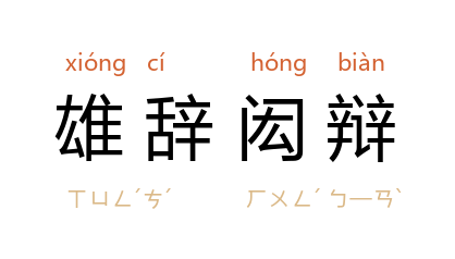 雄:宏大,强有力;闳:宏大。雄健的言辞,强有力的辩论。
