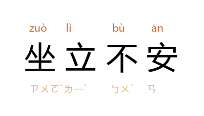 坐着站着都不安宁。形容烦躁、紧张的样子。