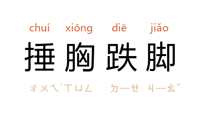 出处元 无名氏《冻苏秦》第二折:“不是我炒炒闹闹,痛伤情捶胸跌脚。”