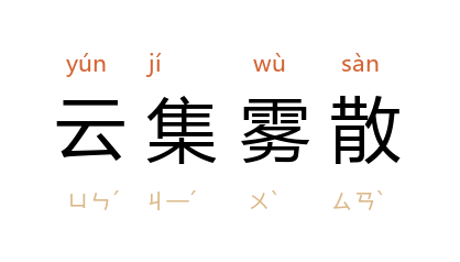 出处汉·班固《西都赋》:“朝发河海,夕宿江汉,沉浮往来,云集雾散。”