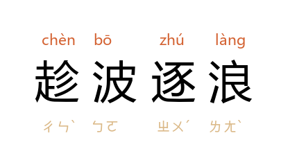 出处元 尚仲贤《柳毅传书》第四折:“谁想并头莲情断藕丝长,搬调的俺趁波逐浪。”元 石德玉《紫云亭》第四折:“当日个为多情一曲《满庭芳》,曾贬得苏东坡也趁波也趁波逐浪。”