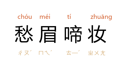 出处《后汉书·五行志一》:“桓帝元嘉中,京都妇女作愁眉、啼妆、堕马髻、折腰步、龋齿笑。所谓愁眉者,细而曲折。啼妆者,薄饰目下,若啼处。”