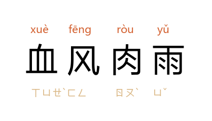 出处梁启超《论权利思想》:“试一读欧美诸国法律发达史,如立宪政,废奴隶……等诸大法律,何一不自血风肉雨中熏沐而来。”