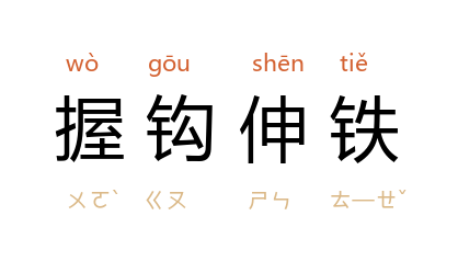 伸:伸直。把钩伸直,绞铁成索。形容力大。