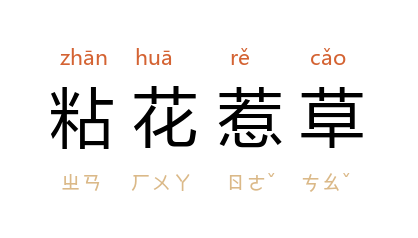 注音ㄓㄢ ㄏㄨㄚ ㄖㄜˇ ㄘㄠˇ