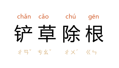 铲:消灭;除:去掉。除草时要连根除掉。比喻除去祸根,不留后患。