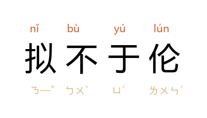 拟:比拟;伦:同类。指不以同类或同等事物来比拟。比拟失当。