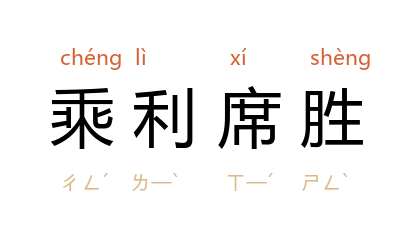 出处《汉书·蒯通传》:“楚人起彭城转斗逐北,至荥阳乘利席胜,威震天下。”颜师古注:“席,因也,若人之在席上。”
