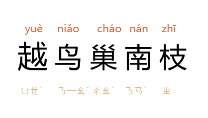 越:古代国名,今浙江一带。越地的鸟在外地筑巢,必用向南的树枝。比喻不忘故乡。