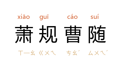 萧何定下的政策规章制度;曹参全盘继承。借指后人沿袭前人遗制。萧:萧何;西汉初年丞相;规:规矩;规章;曹:曹参;萧何死后;继任丞相;随:跟随;沿袭。