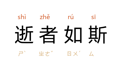 出处先秦 孔子《论语 子罕》:“子在川上曰:\'逝者如斯夫!不舍昼夜。\'”